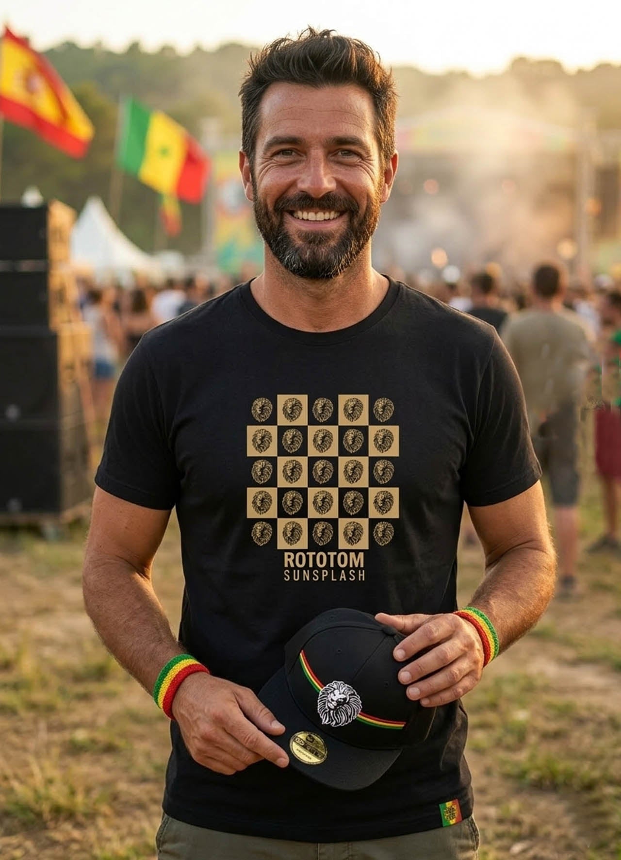 Unisex t-shirt with a modular print of Rototom's iconic lion. A repeating checkerboard graphic for a clean, urban look with 24/7 festival attitude. Relaxed fit, premium cotton, and Sunsplash essence in every detail. Minimal, cultural, and ready for any plan.